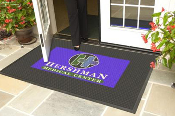 Nitrile rubber matting with screened logo, perfect for outdoor , indoor, or wet area use with smooth back for use on hard flooring.